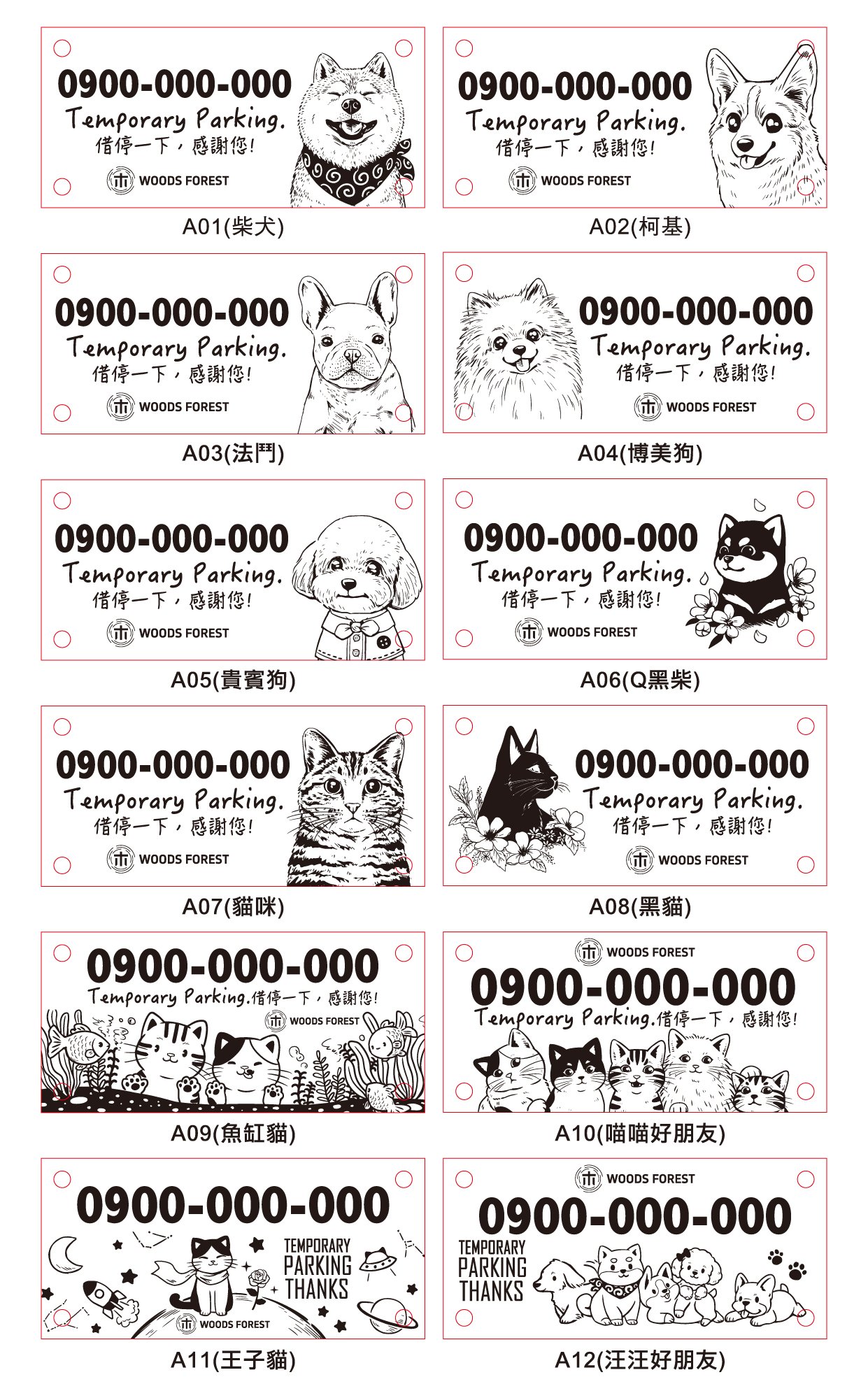 • 原木停車卡_A系列(貓咪/狗狗)