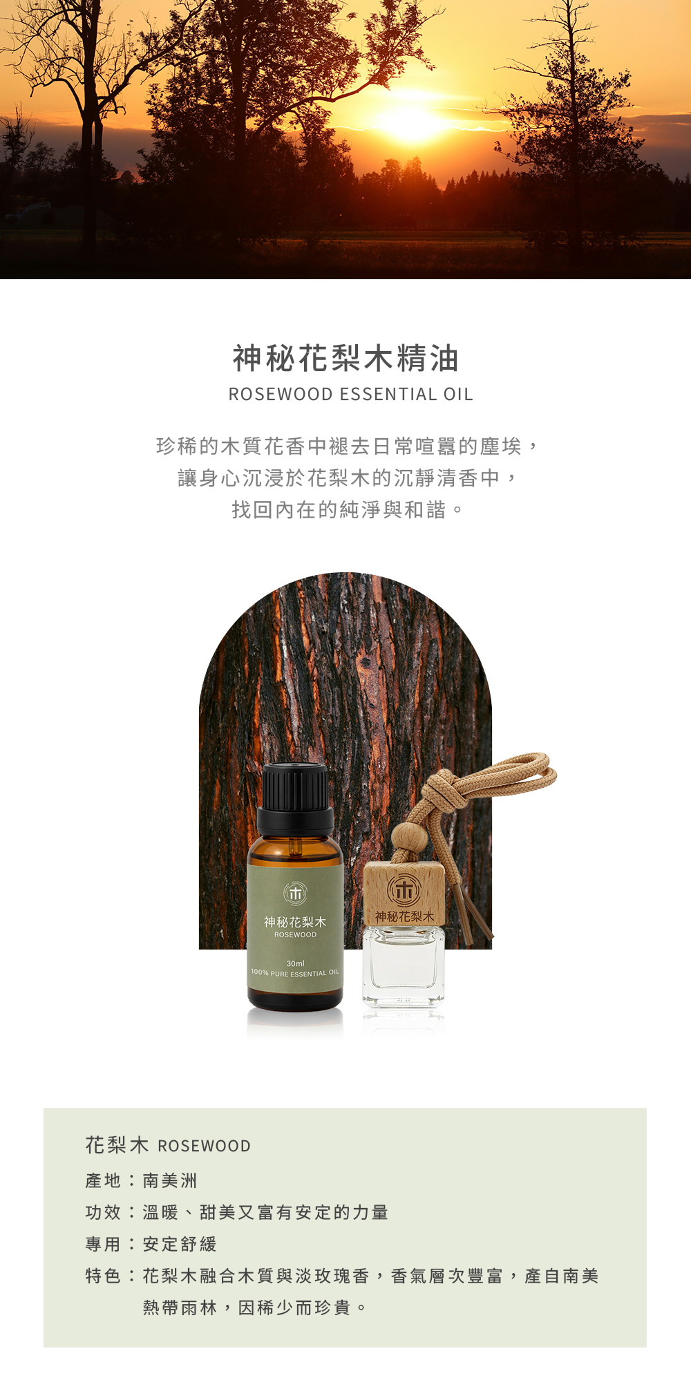 為少數同時擁有木質香與淡淡玫瑰香的木材,溫暖、甜美又富有安定的力量的木質香,帶有淡淡果香、花香與玫瑰香,味道豐富有層次。