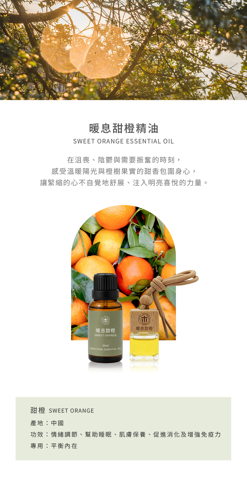 陽光穿過橙樹,空氣裡滿是果實的甜氣,那香味像笑意般溫暖,讓心不自覺地舒展,是能讓生活變得明亮的一道光。