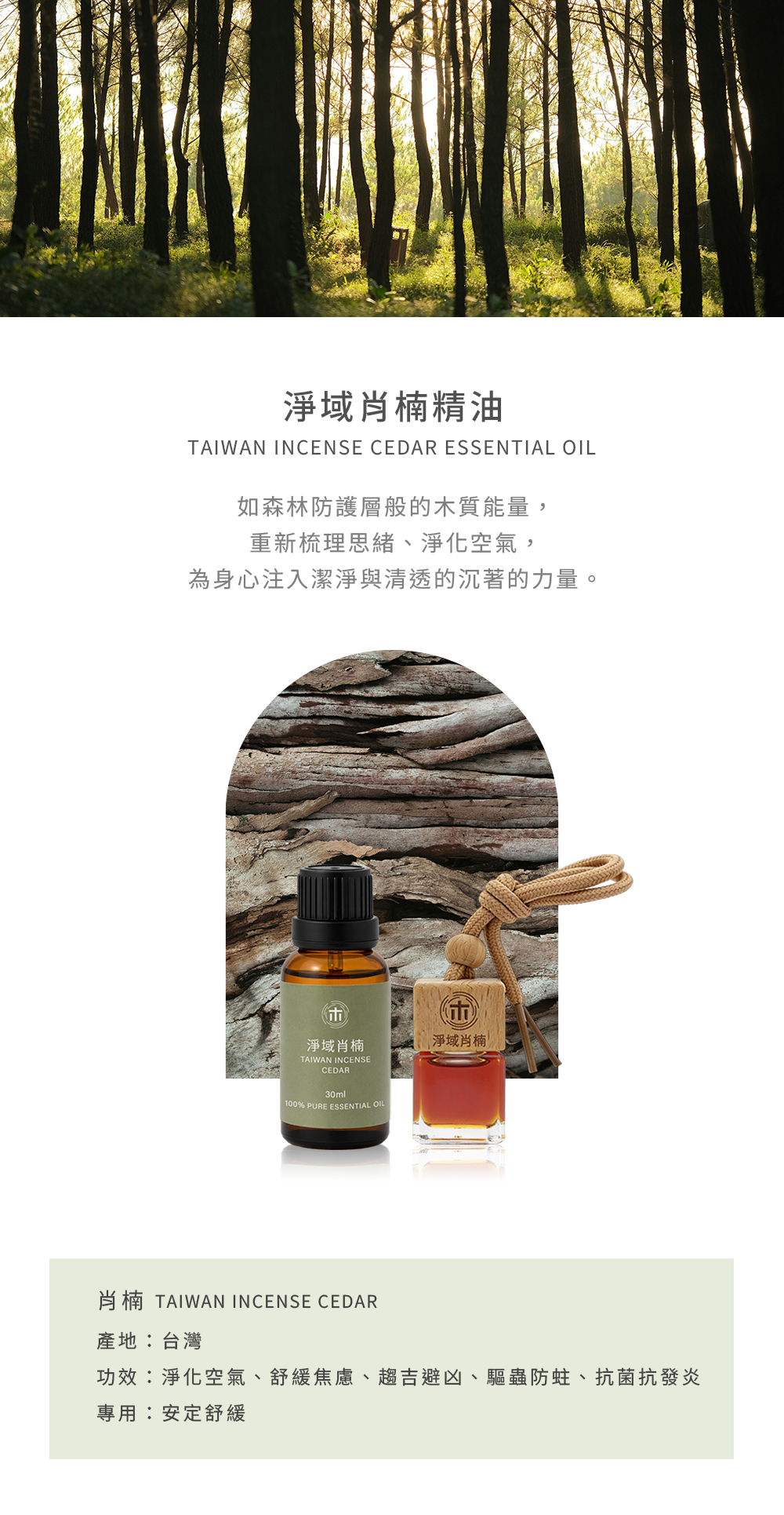 來自台灣深山的肖楠,香氣穩重而清透,木質氣息中蘊含著強大的生命力,如森林的防護層,靜靜淨化空氣與思緒,在潔淨與堅定之間,展現山林最原始的力量。