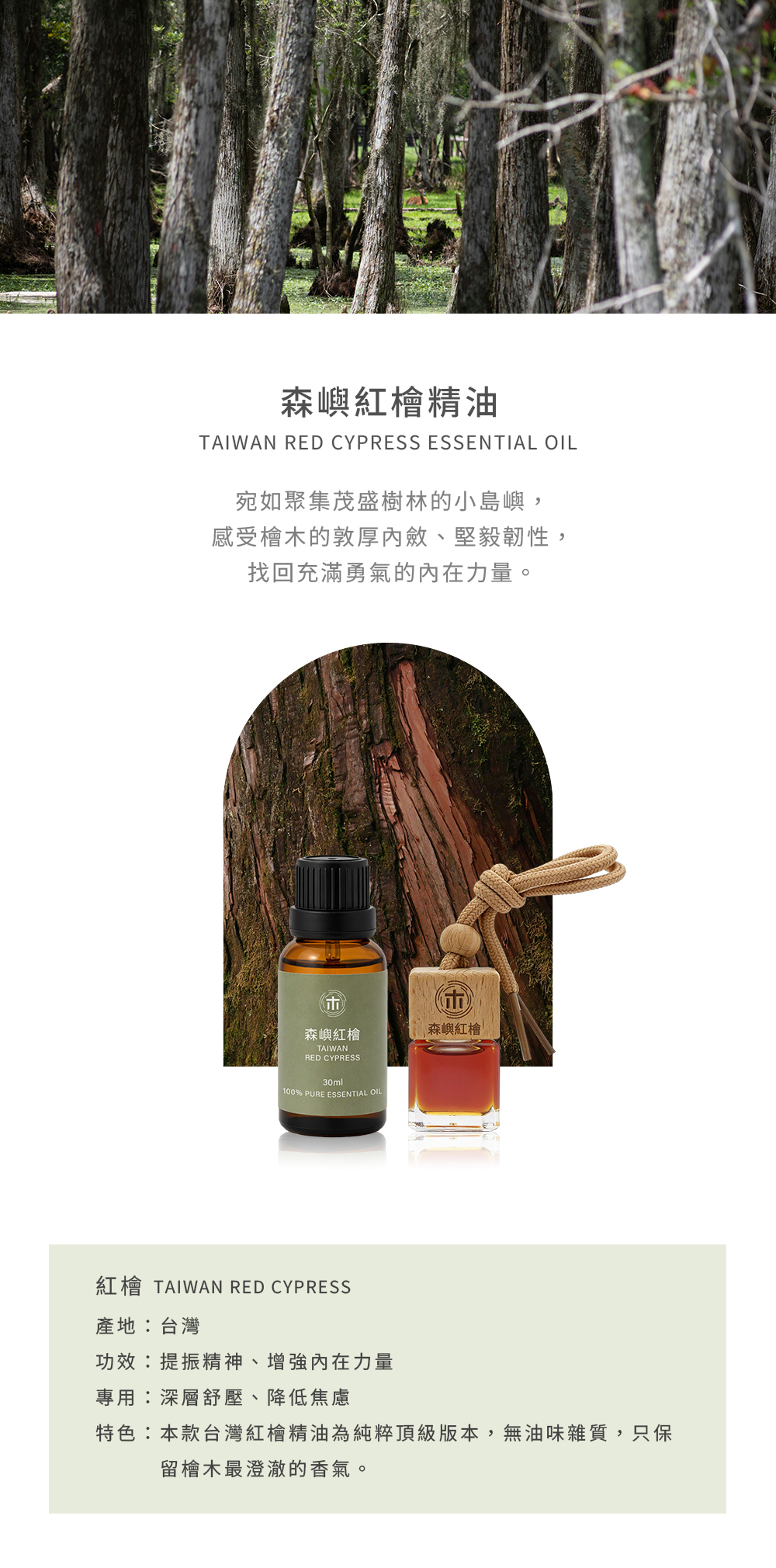 宛如聚集茂盛樹林的小島嶼,享受陽光灑落、溫度微高,臉頰微微紅潤,身體散出些許熱氣,感受到如同檜木的敦厚內斂、堅毅韌性,找回充滿勇氣的內在力量。